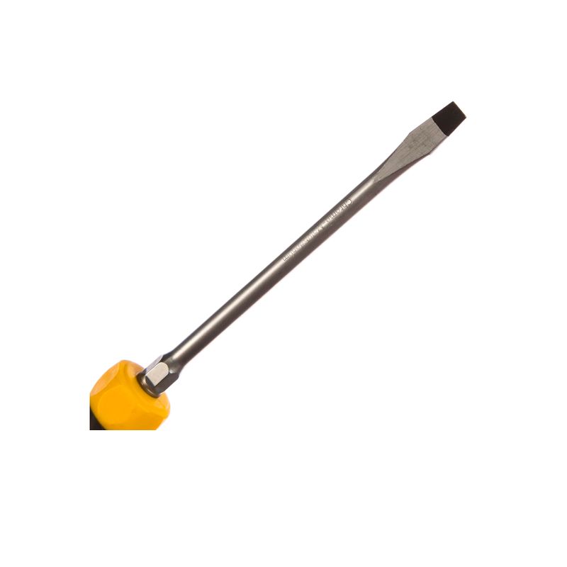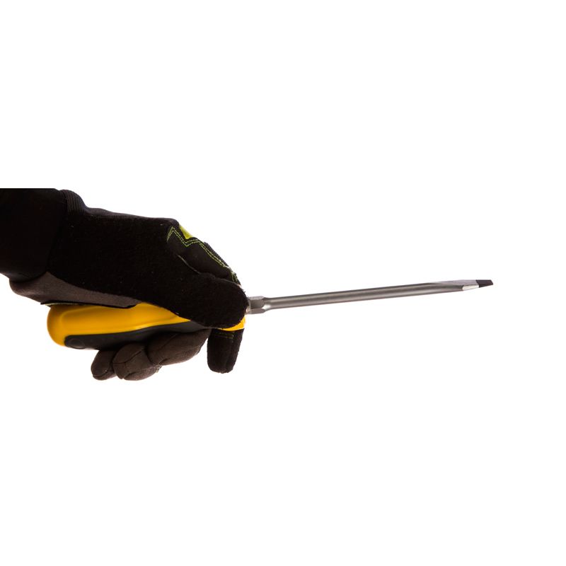 Профессиональная шлицевая плоская (минусовая) силовая отвертка под ключ. Шлиц: плоский SL (SLOTTED) размер SL8 со стержнем 150 мм. Отвертка плоская SL8x150мм имеет намагниченный наконечник и двухкомпонентную маслобензостойкую рукоятку. Отверстие в рукоятке используется для хранения отвертки 8х150 мм на крючке. Отвертка SL 8мм предназначена для работы с крепежом с внутренним профилем SLOTTED (плоский шлиц).