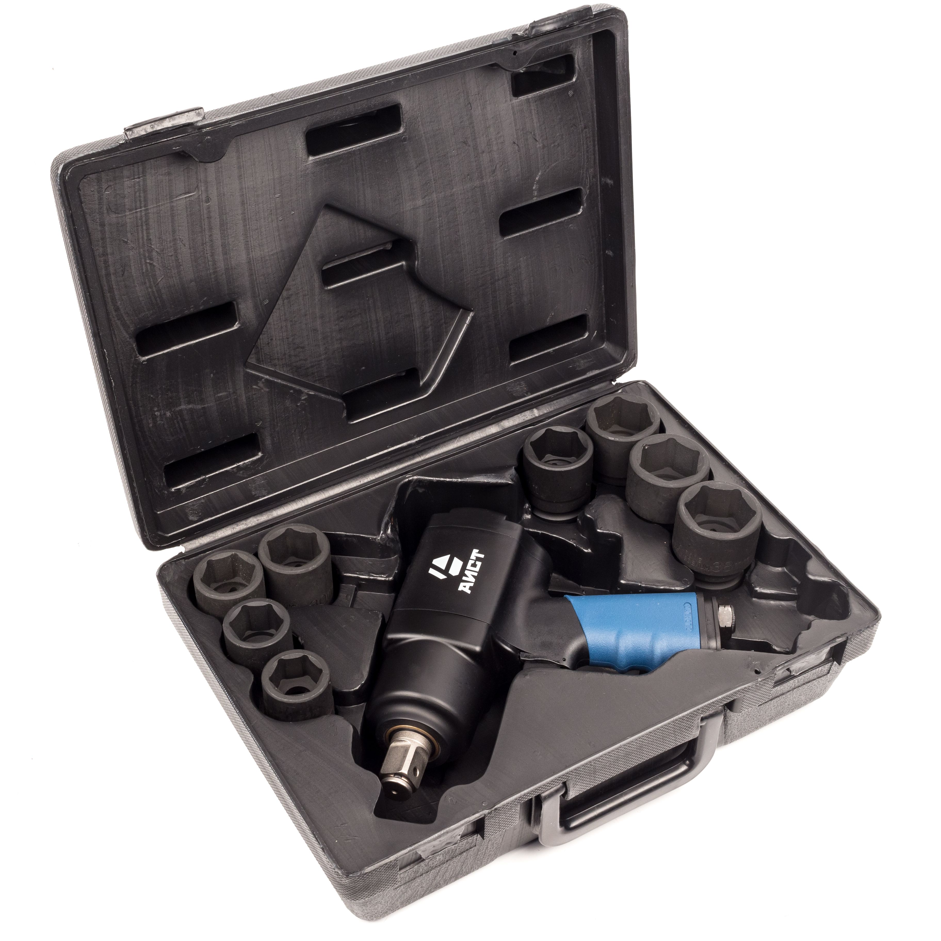- пневматический гайковерт с головками в пласт. кейсе