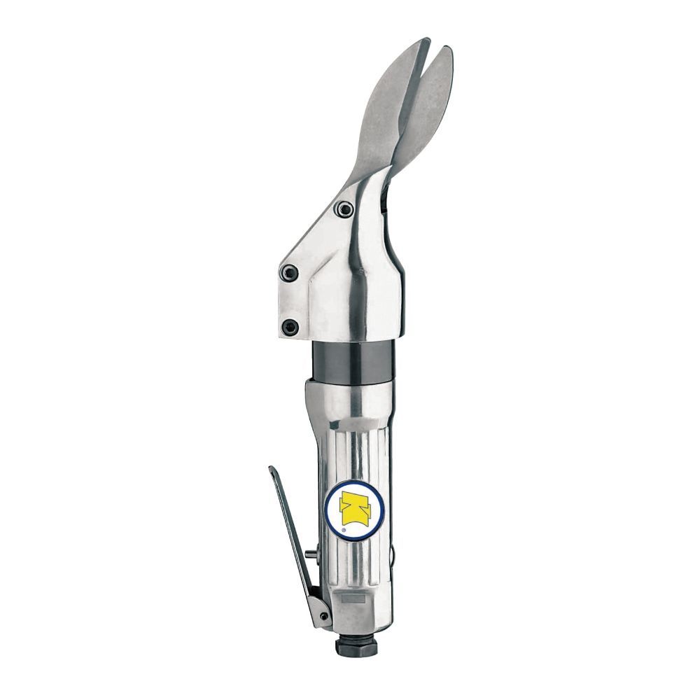 Профессиональные пневматические ножницы. Лезвия из закаленной стали пневмоножниц позволяют сделать ровный и четкий рез стальных, алюминиевых и пластмассовых листов толщиной до 1,6 мм.
