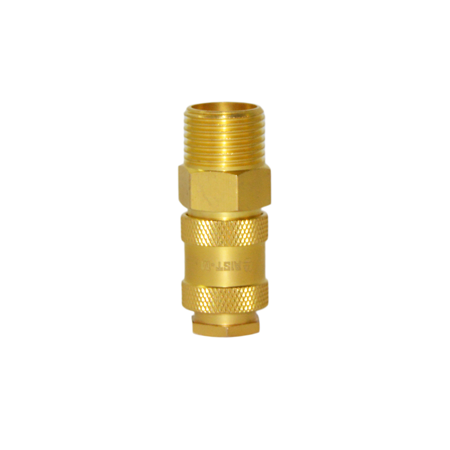Быстросъемное соединение для воздуха "мама"-"наруж. резьба" 1/2" используется для соединения пневмоинструмента, шлангов и компрессорного оборудования. Быстроразъемное соединение для пневматики с обратным клапаном изготовлено из латуни.