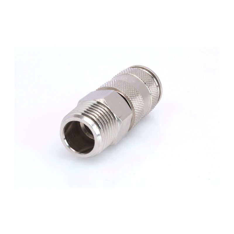 Быстросъемное соединение для воздуха "мама"-"наруж. резьба" 3/8" используется для соединения пневмоинструмента, шлангов и компрессорного оборудования. Быстроразъемное соединение для пневматики с обратным клапаном изготовлено никелированной латуни.