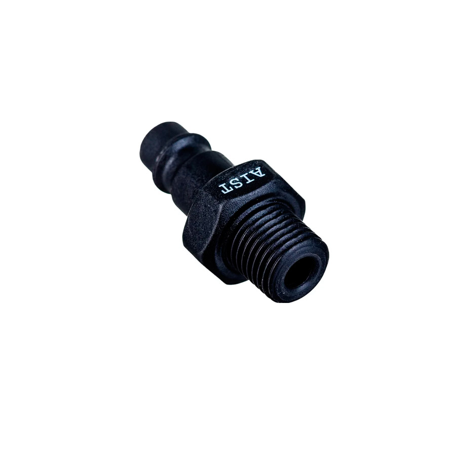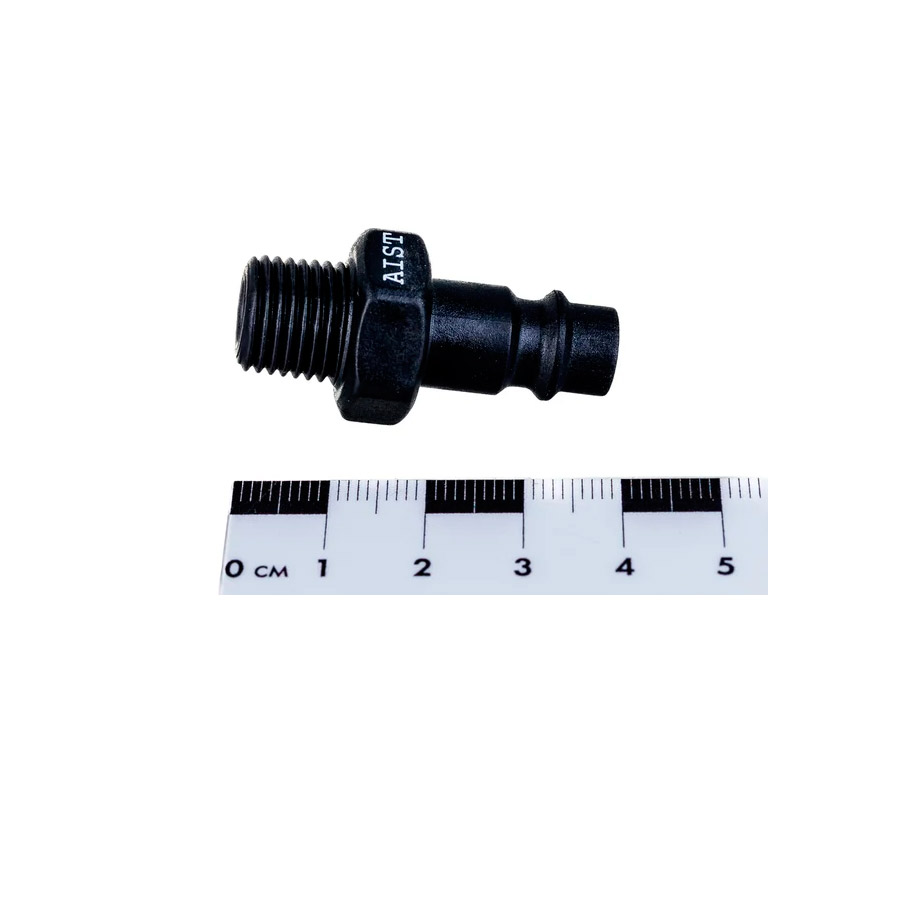 Быстросъемное соединение для воздуха "папа"-"наружная резьба" 1/4" используется для соединения пневмоинструмента, шлангов и компрессорного оборудования. Быстроразъемное соединение для пневматики изготовлено из нейлона (инженерного композитного пластика). Пневматический воздушный штуцер переходник рапид "папа" 1/4" M дюйма быстросъемный наружная резьба. Композитный фитинг быстросъем (БРС) штуцер 1/4 дюйма наружная резьба.