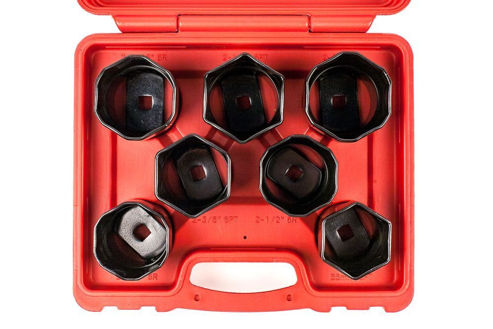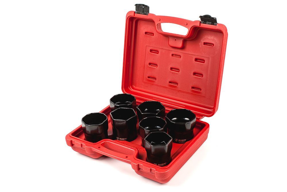 Данный набор состоит из семи шестигранных головок разных размеров, с помощью которых осуществляется снятие и установка гайки крепления ступицы колеса.