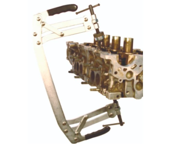 Приспособление для рассухаривания клапанов используется при замене клапанов или во время других операции, связанных с извлечением клапанов из головки блока цилиндров (OHC, OHV и CVH типов). Струбцинный съемник для сжатия пружин клапанов применяется на многоклапанных бензиновых и дизельных двигателях с глубокими клапанными колодцами. Рассухариватель универсальный струбцина С-образный для снятия пружин клапанов.