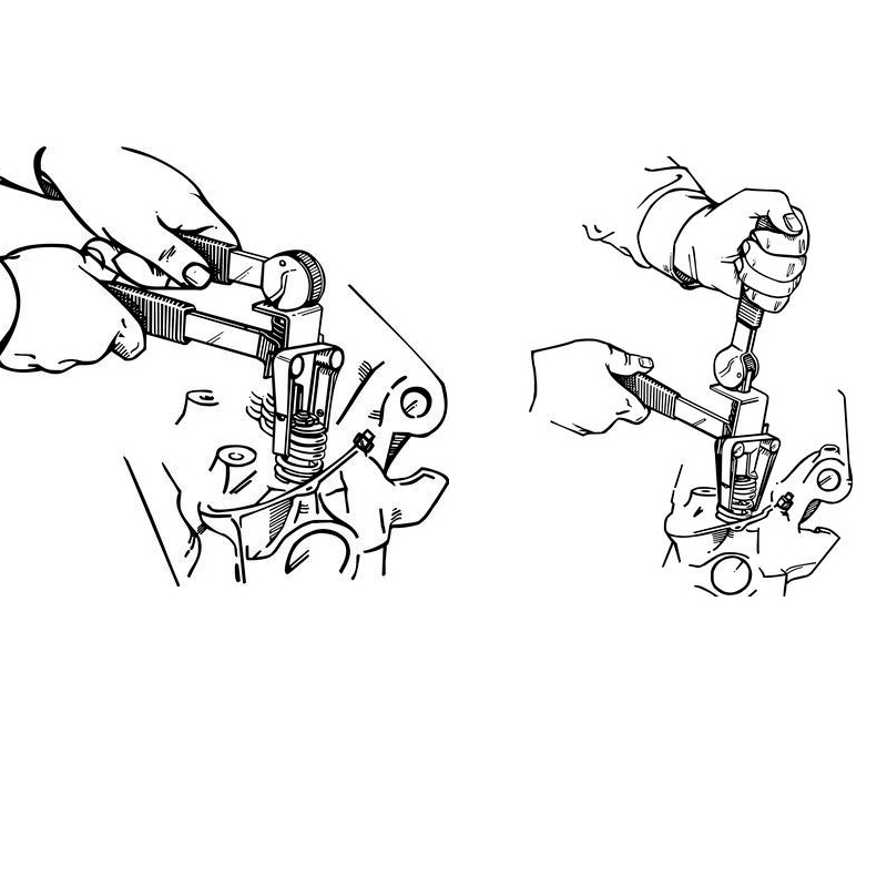 Универсальный рычажный рассухариватель клапанов используется без снятия головки блока цилиндров для верхнеклапанных двигателей.