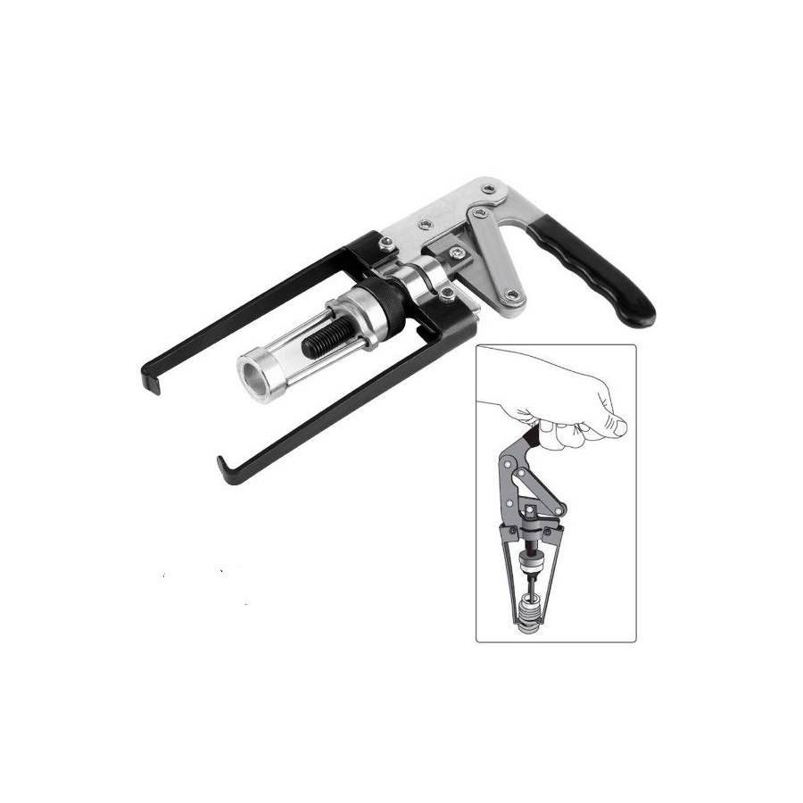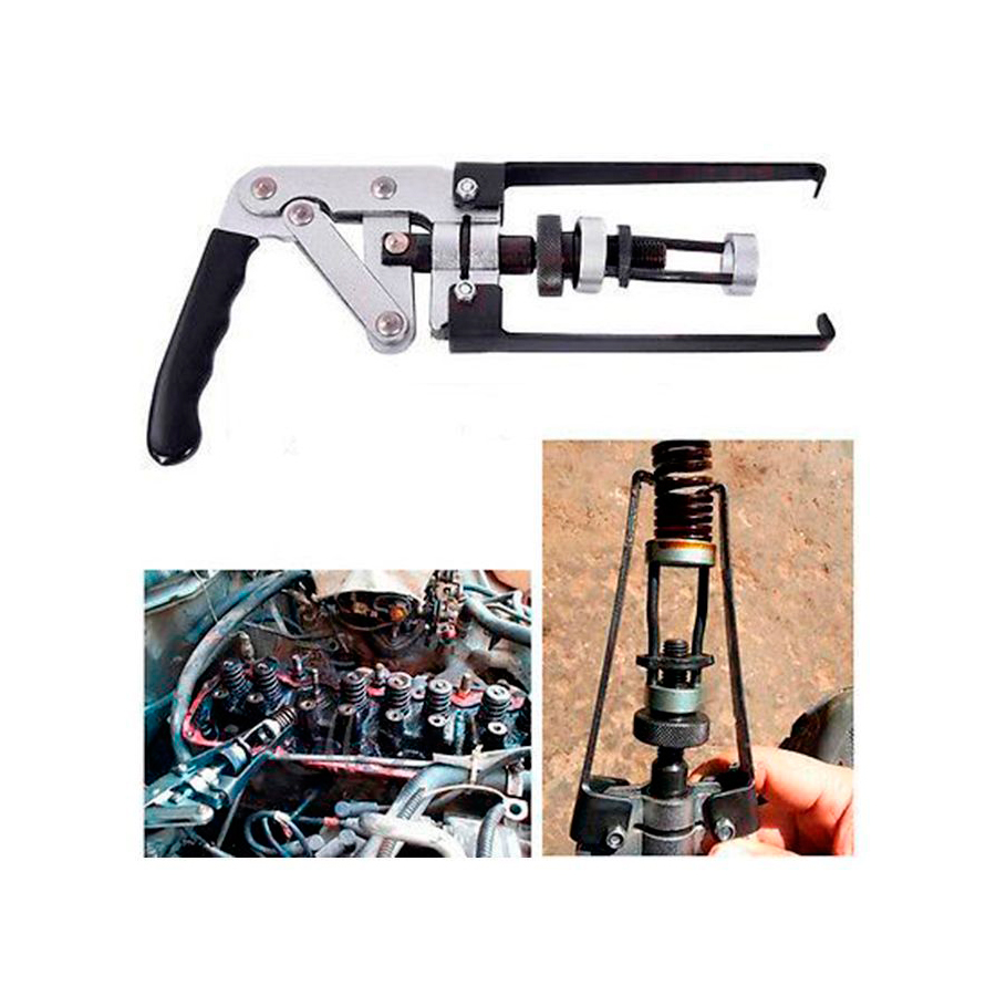 Рассухариватель клапанов используется для работы с головками блока цилиндров бензиновых и дизельных верхневальных двигателей типа OHV, OHC и CHV. Съемник позволяет снять пружину клапана вместе с тарелкой и без труда поменять маслосъемные колпачки. Чтобы использовать данный съемник нужно снять только клапанную крышку двигателя.