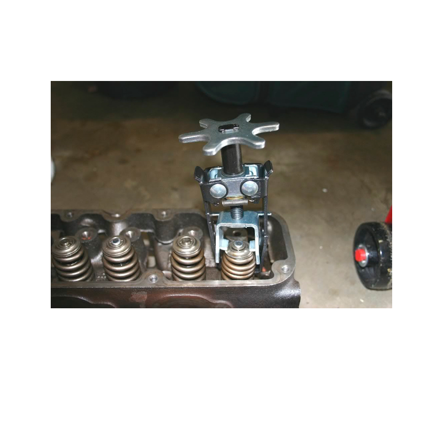 Рассухариватель клапанов ручной винтовой используется для работы с головками блока цилиндров верхневальных двигателей. Съемник позволяет снять пружину клапана вместе с тарелкой и без труда поменять маслосъемные колпачки. Чтобы использовать данный съемник нужно снять только клапанную крышку двигателя.