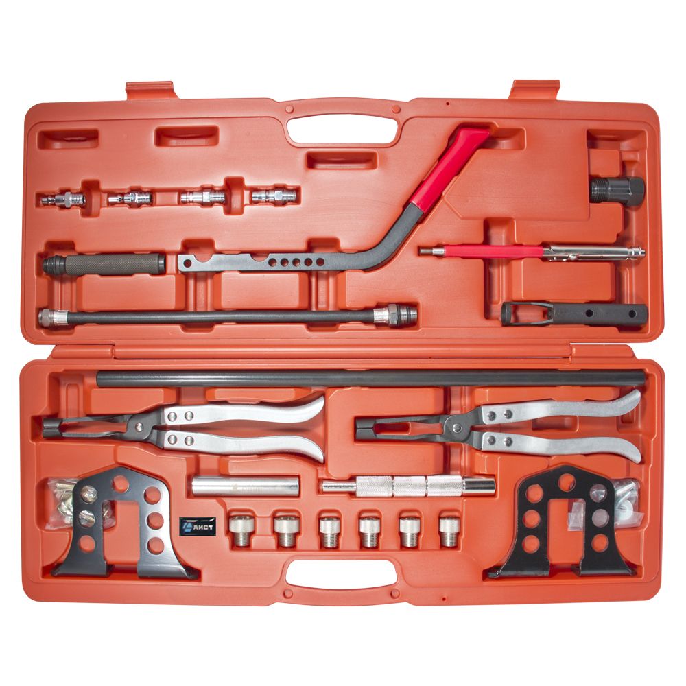 Набор включает в себя всё необходимое для снятия сухарей клапанов, а так же для снятия и установки клапанных пружин, а так же для снятия и установки маслоотражающих колпачков (сальников клапанов). Подходит для ГБЦ двигателей системы OHV, OHC, SOHC и DOHC (twincam).