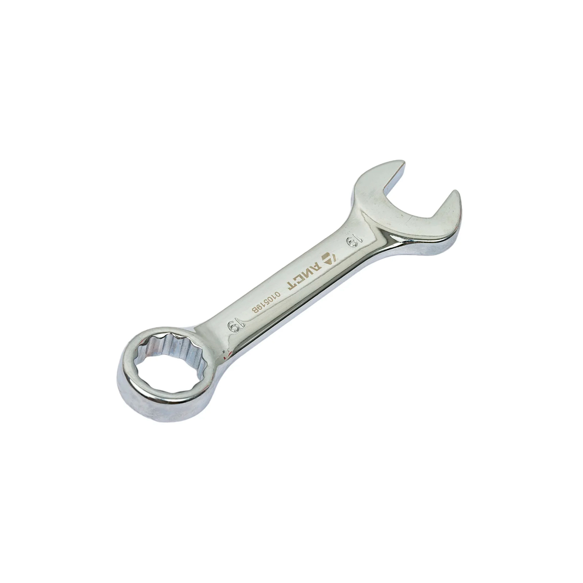 Профессиональный укороченный рожково-накидной гаечный ключ размером 19мм используется для работы с резьбовыми соединениями в труднодоступных или стесненных местах, а так же при работе в ограниченном пространстве. Применяется в сфере ремонта различной техники и агрегатов. Длина ключа составляет 140 мм.