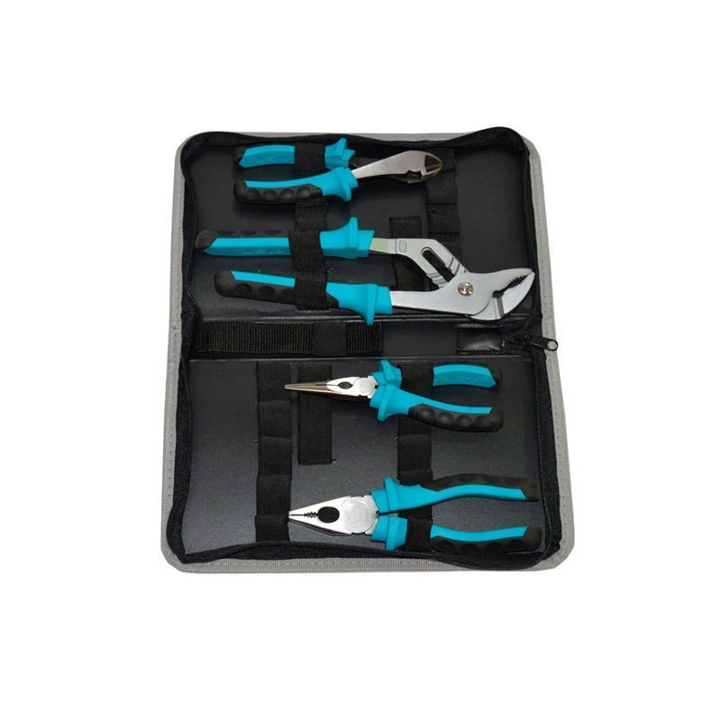 Профессиональный шарнирно-губцевый набор инструментов: плоскогубцы, длинногубцы, бокорезы и клещи переставные 4 предмета в тканевом пенале предназначены для слесарных, столярных, инженерных и других ремонтных работ. Тканевый пенал облегчает хранение и транспортировку, в котором все инструменты зафиксированы на своих посадочных местах.