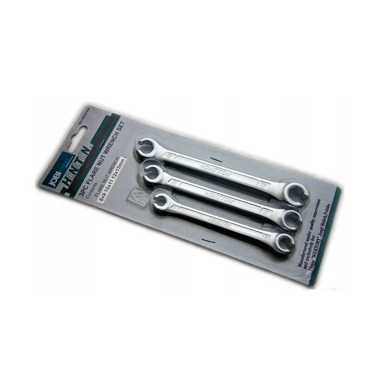 Профессиональный набор гаечных разрезных ключей 3 предмета изготовлен из хромванадиевой стали. Набор разрезных ключей предназначен для работы с различными трубопроводами, например, для тормозных трубок или топливных линий.