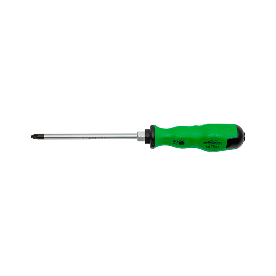 Профессиональная крестовая (крестообразная) силовая ударная отвертка под ключ. Шлиц: крест РZ (POZIDRIV) размер PZ3 со стержнем 150 мм. Отвертка крестовая PZ3x150мм имеет намагниченный наконечник, двухкомпонентную маслобензостойкую рукоятку и ударное цельнометаллическое жало (стержень). Отвертка PZ no 3 предназначена для работы с крепежом с внутренним профилем POZIDRIV (ПЗ).