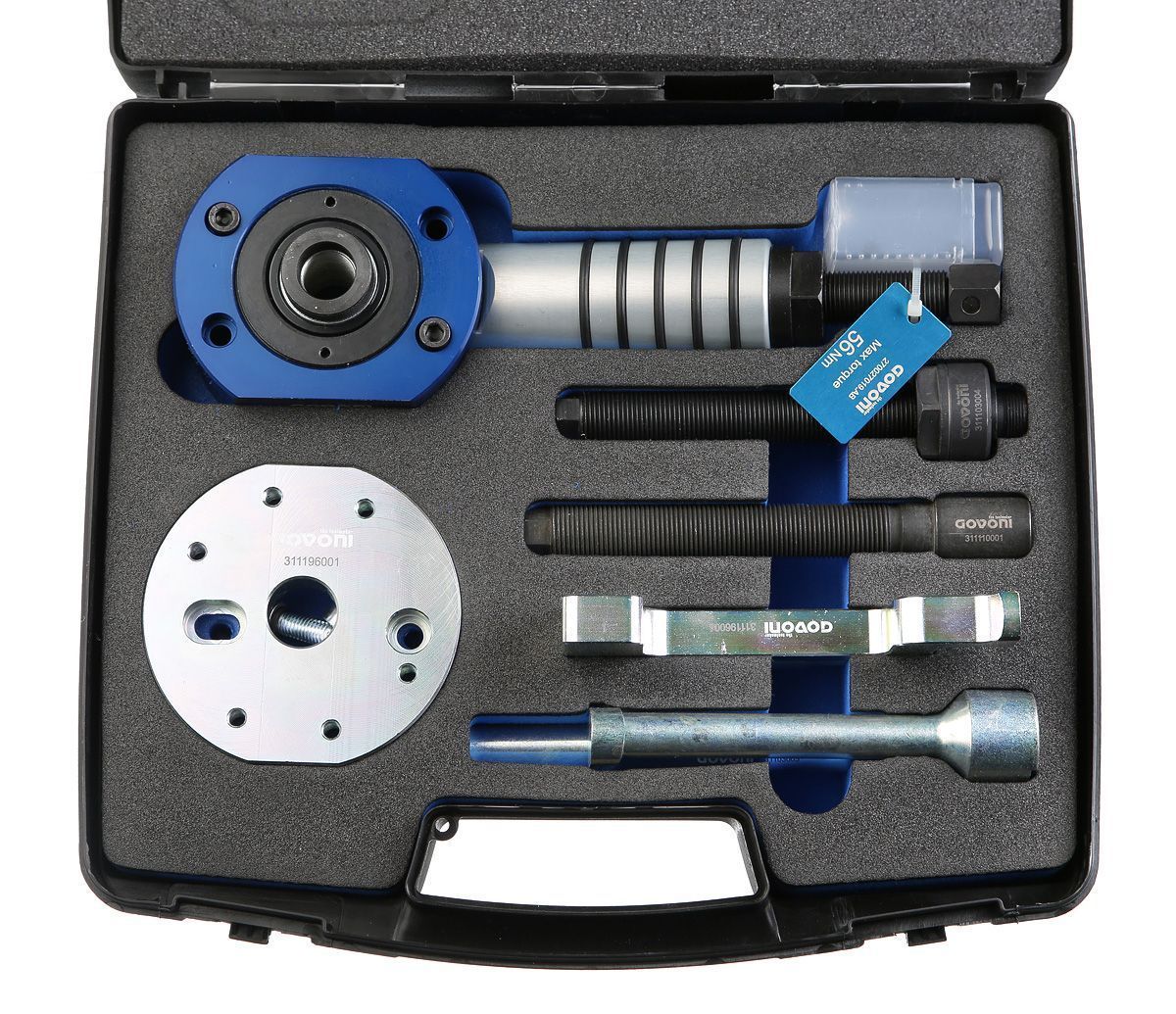 В набор входит тонкий гидравлический цилиндр на 12 тонн, который поможет механику произвести процедуру без частичной разборки двигателя экономя время и силы.