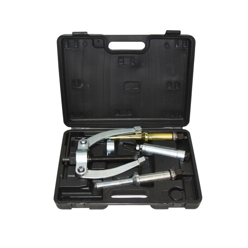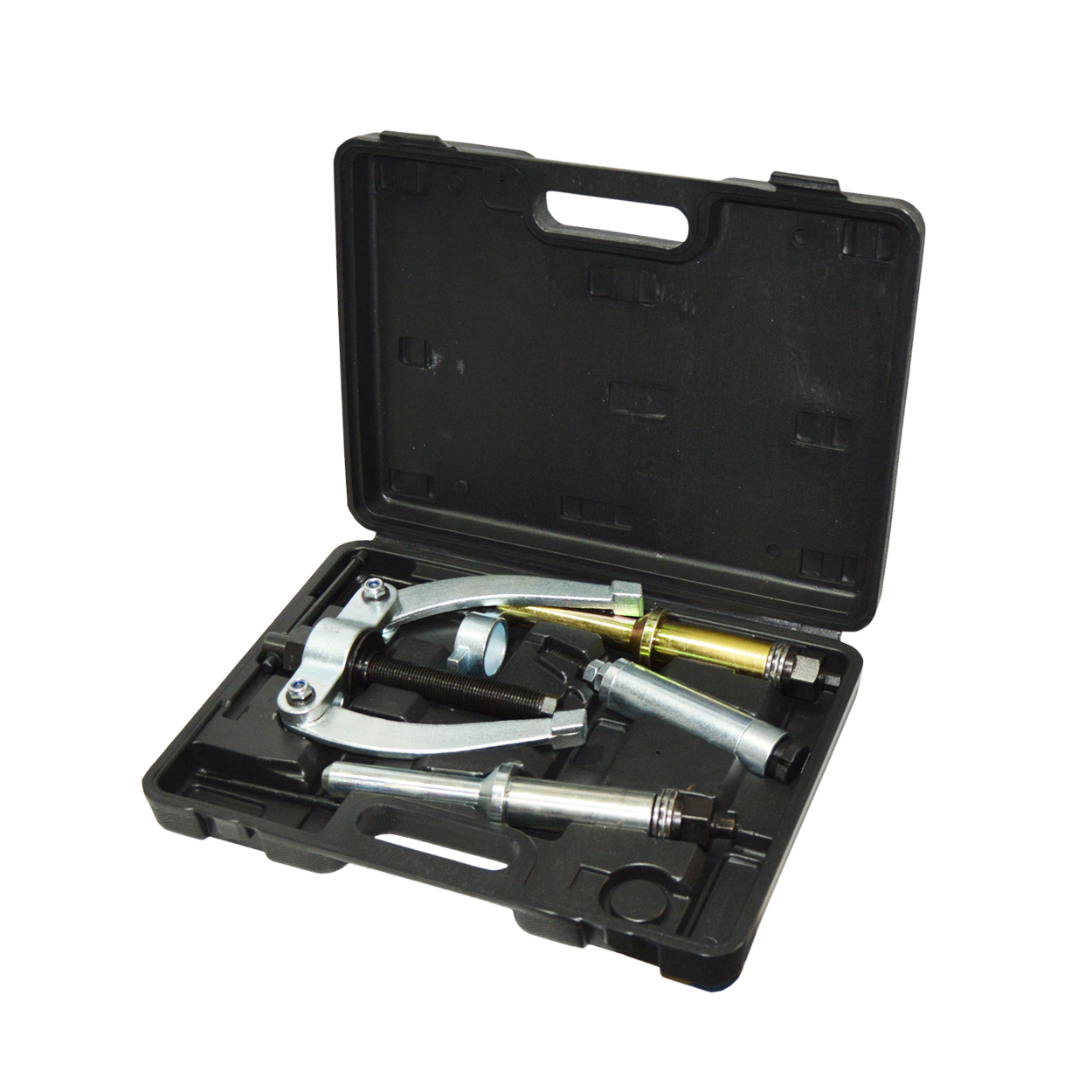 Специально разработанный комплект, позволяющий извлекать медный стакан топливной форсунки из верхней части головки блока цилиндров на грузовых автомобилей MACK и VOLVO FM12/FH12 оборудованных двигателями D11, D13, D16, MP7, MP8, MP9, MP10. В комплекте используется конструкция расширяющейся цанги для захвата втулки сверху и присоединения к винту силы съемника. Подходит для снятия как стальных, так и медных втулок.