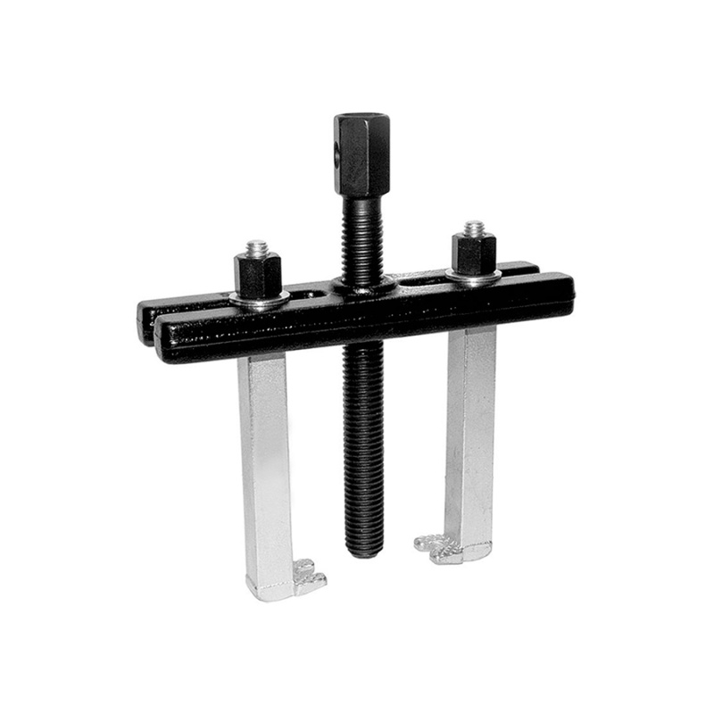 Съемник подшипников двухлапый предназначен для демонтажа деталей, запрессованных в обойму или установленных на вал. Используется для снятия подшипников с различными внешними диаметрами. Так же применяется для демонтажа шкивов, шестерен с захватом за внешнюю часть детали, и где это необходимо и возможно технологически, за внутреннюю часть, переустановив захваты. Съемник подшипников 2-ух захватный имеет ширину захватов деталей от 30 до 110 мм. Конструкция двухзахватного съемника подшипников позволяет регулировать как ширину захвата, так и глубину. Съемник подшипников с двумя захватами может применяться как для внешнего, так и для внутреннего демонтажа.