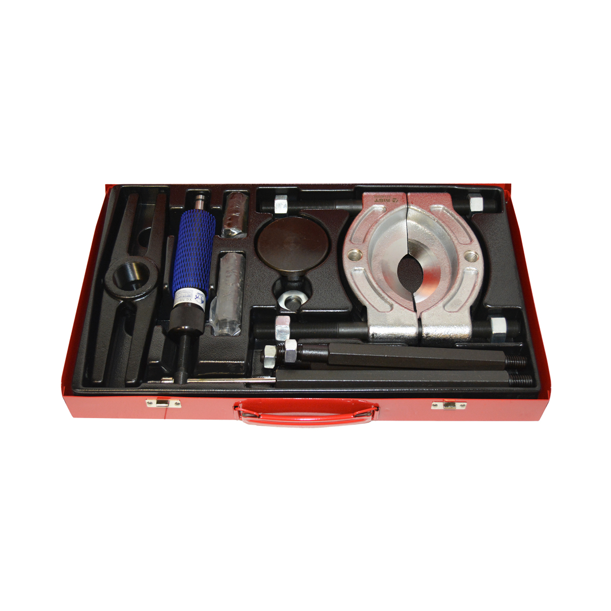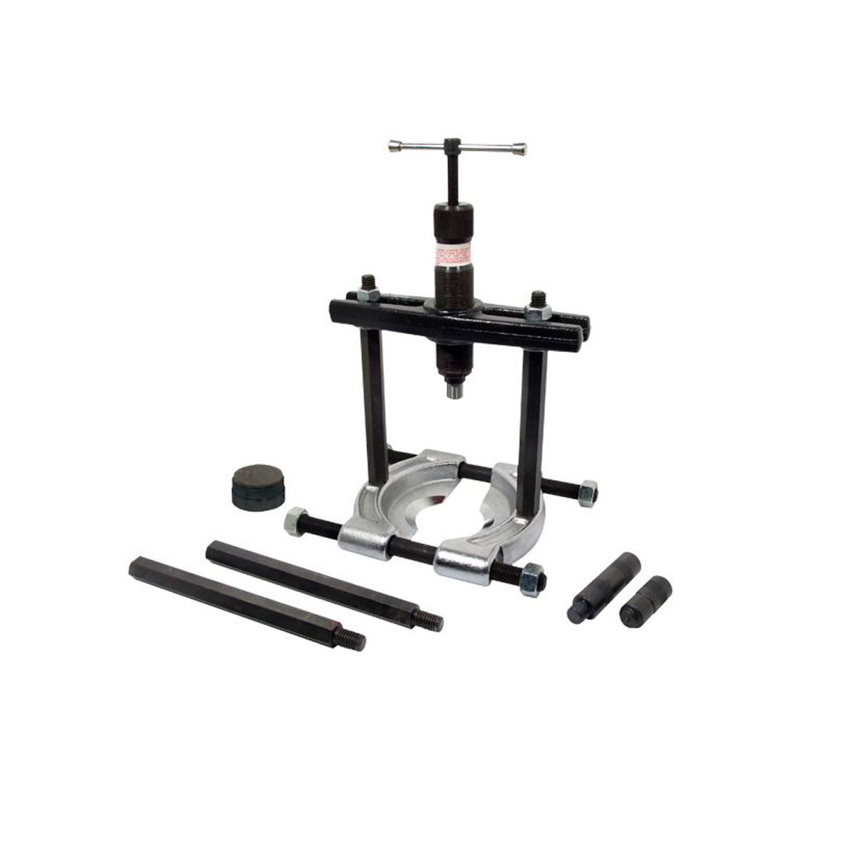 Демонтирует подшипник с помощью Н-образной балки и болтов. Захваты съемника изготовлены из легированной углеродистой стали, SCM415 закаленной до твердости HRC 42-45, позволяют обслуживать детали в диапазоне размеров от 105 до 150 мм. Детали тянущей части изготавливаются из углеродистой стали. Максимальное усилие винтового гидравлического цилиндра - 10 тонн.