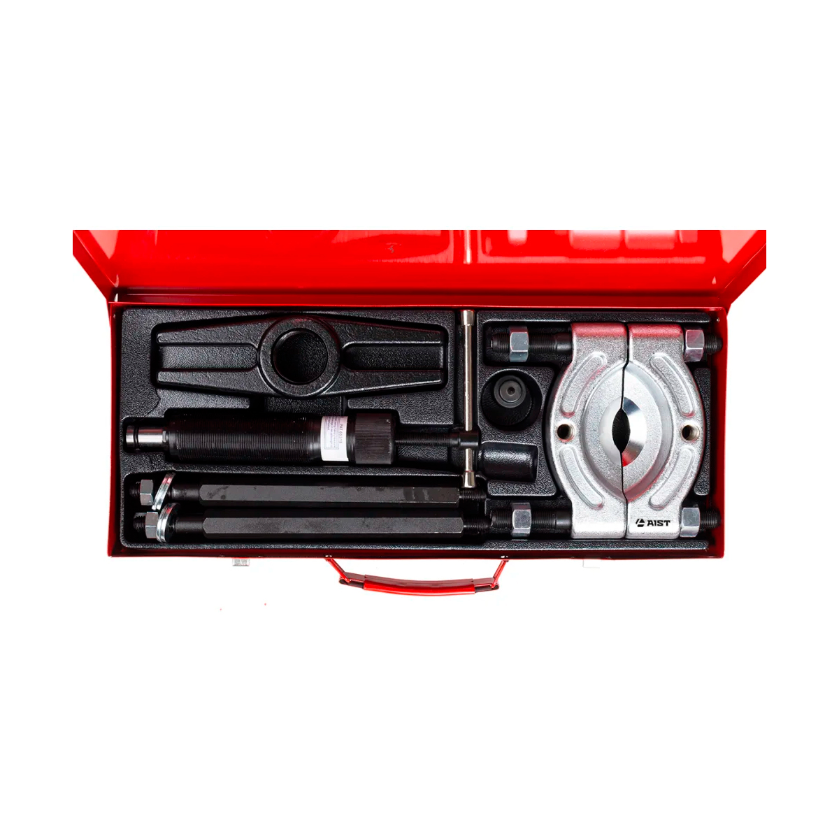 Благодаря наличию гидравлического привода применение cъемника-сепаратора не требует больших усилий и позволяющет применять его для проведения демонтажных работ с особонагруженными деталями. Демонтирует подшипник с помощью Н-образной балки и болтов. Захваты съемника изготовлены из легированной углеродистой стали SCM415, закаленной до твердости HRC 42-45, позволяют обслуживать детали в диапазоне размеров от 75 до 105 мм. Детали тянущей части изготавливаются из углеродистой стали.