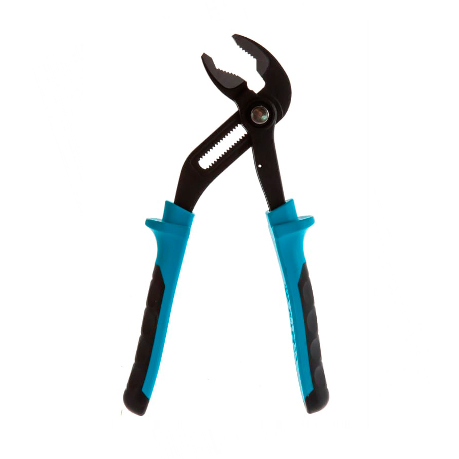 Клещи переставные кобра 240мм универсальные (инструмент геббельсы) с кнопочным фиксатором и двухкомпонентными эргономичными ручками. Клещи переставные используются для захвата и удержания различных деталей, а также для закручивания и откручивания резьбовых соединений. Профессиональный гаечный ключ кобра универсальный переставной с кнопочной фиксацией. Клещи с зубчатой рейкой позволяют максимально точно подобрать размер зева для работы с метрическим и дюймовым крепежом.