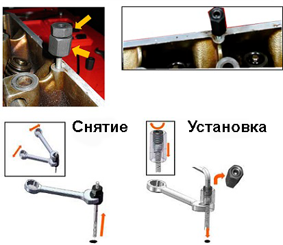 Нижний ряд шпильковертов используется для снятия шпилек, а верхний для установки.