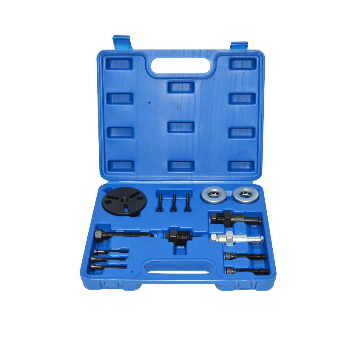 Набор для ремонта и обслуживания компрессора кондиционера 10 предметов. Применяется для фиксации при разборке и сборке муфты компрессора кондиционера, а также для замены уплотнений и сервисного обслуживания. Профессиональный съемник для снятия шкива/муфты компрессора кондиционера.