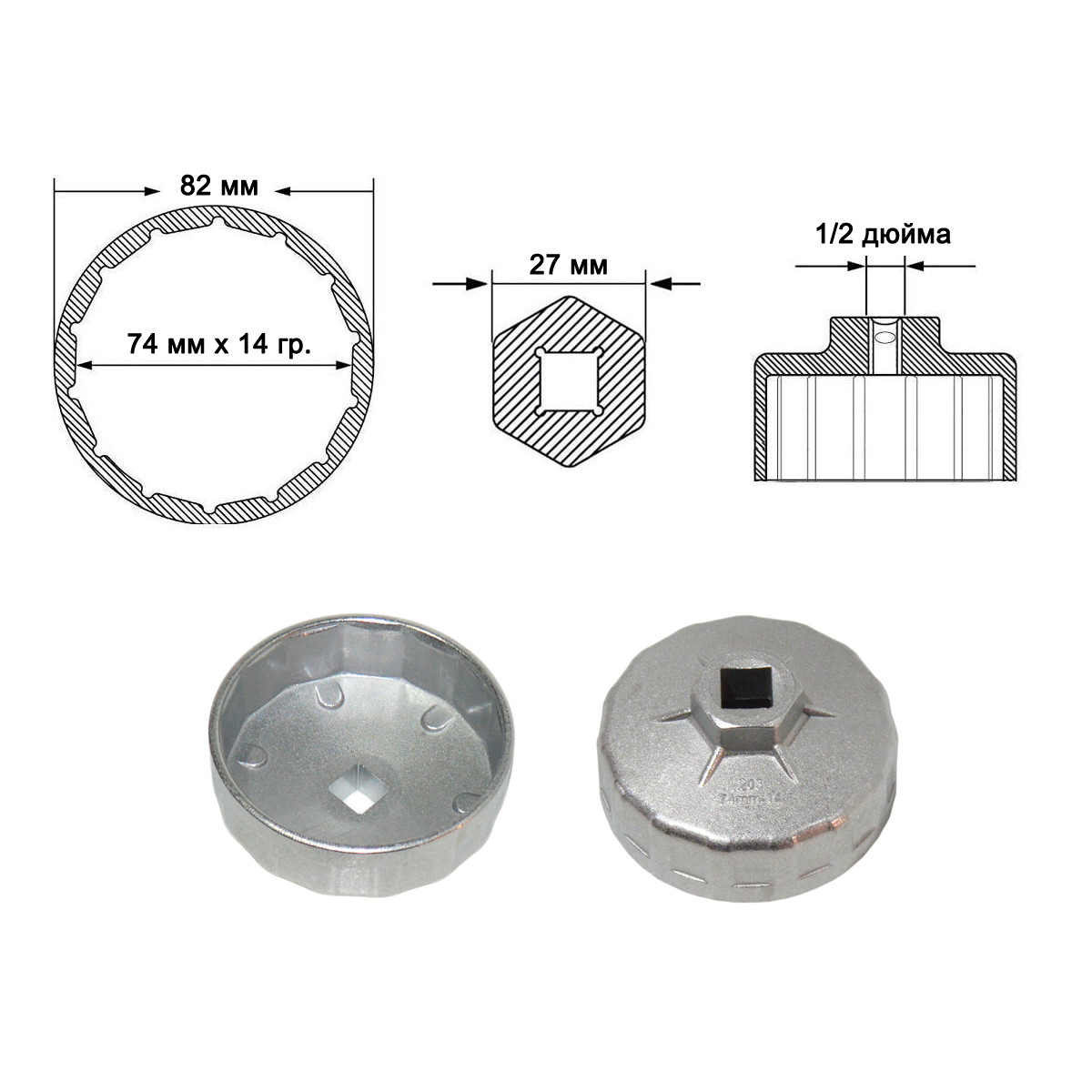 Съемник (ключ) масляного фильтра "чашка" 74мм 14-гр.