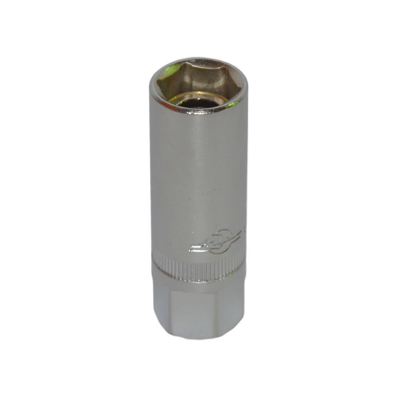Головка свечная 16мм 3/8" 6-гранная сатиновая с магнитным фиксатором и накаткой по окружности для снятия и установки свечей зажигания. Cвечная головка магнитная на 16 за счет наличия магнитного фиксатора надежно захватывает свечу зажигания, чтобы избежать ее падения в колодец. Головка свечная магнитная 16мм имеет шестигранный профиль и посадочный квадрат 3/8 дюйма. Профессиональная магнитная головка на 16 для свечей зажигания.