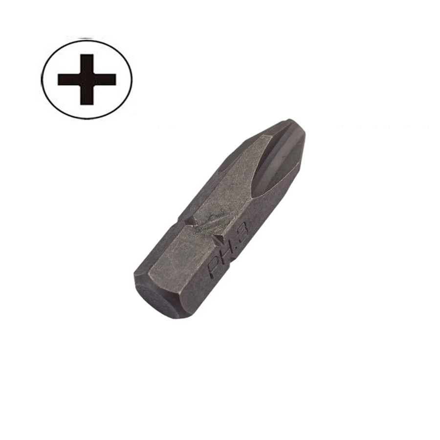Бита крестовая (PH) PH3 изготовлена из стали S2 (Cr-Ni-Mo). Бита PHILLIPS (Крест) РН3 имеет посадку под внутренний шестигранный привод (HEX) размером 5/16" (7.94мм). Длина бита 30мм. Короткая силовая ударная бита для ручного и механизированного инструмента. Например, может использоваться для ударной отвертки с держателем бита на 8мм.