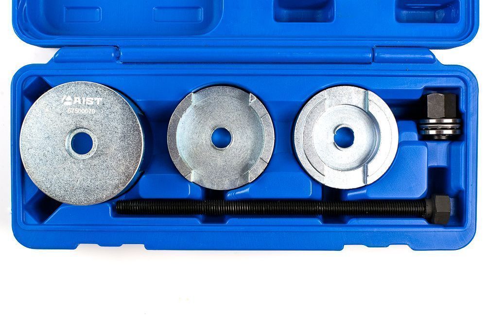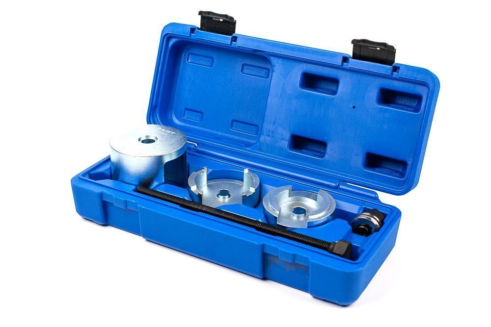 Съемник предназначен для монтажа/демонтажа сайлентблоков задней балки в автомобиле Renault Laguna 2, выпускавшихся с 2001 по 2008 год. Съемник сайлентблоков задней балки (моста) Рено Лагуна 2 поставляется в кейсе. Подходит для снятия и установки сайлентблока Renault 7701209534 (77 01 209 534) и его аналогов.