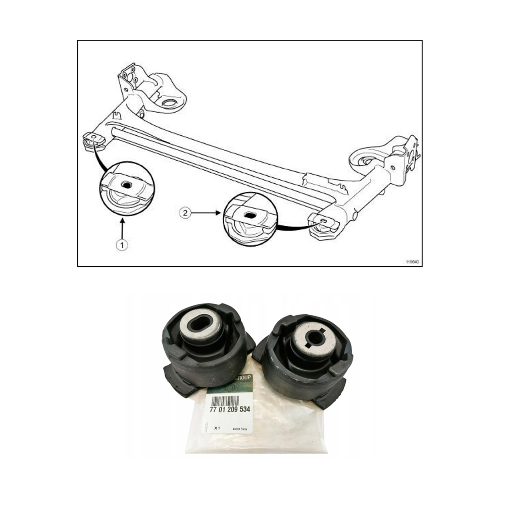 Для сайлентблоков: Renault 7701209534 (77 01 209 534), Febi 26930, MEYLE 16146100019, STELLOX 77-01786-SX, LEMFORDER 3072501 и др.