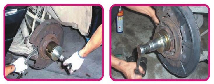 - для замены (снятия и установки) ступичных подшипников, сайлентблоков без демонтажа поворотного кулака и стойки;
