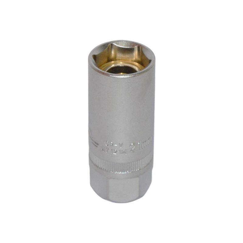 Головка свечная 21мм 1/2" 6-гранная матовая с магнитным фиксатором и накаткой по окружности для снятия и установки свечей зажигания. Cвечная головка магнитная на 21 за счет наличия магнитного фиксатора надежно захватывает свечу зажигания, чтобы избежать ее падения в колодец. Головка свечная магнитная 21мм имеет шестигранный профиль и посадочный квадрат 1/2 дюйма.