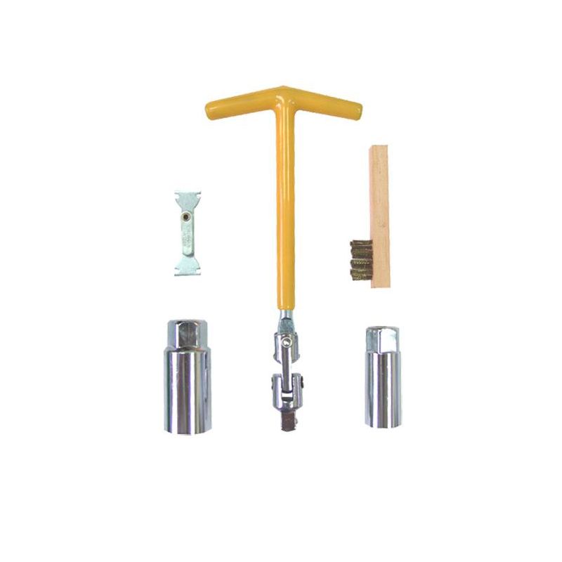 Набор инструмента свечного 3/8" 5 предметов позволяет заменить свечи зажигания размером 16 и 21 мм. В комплекте есть щетка, которой можно очистить свечи зажигания от нагара, щуп позволит измерить зазор свечи зажигания. Универсальный набор для замены свечей зажигания с шарнирной Т-образной рукояткой.
