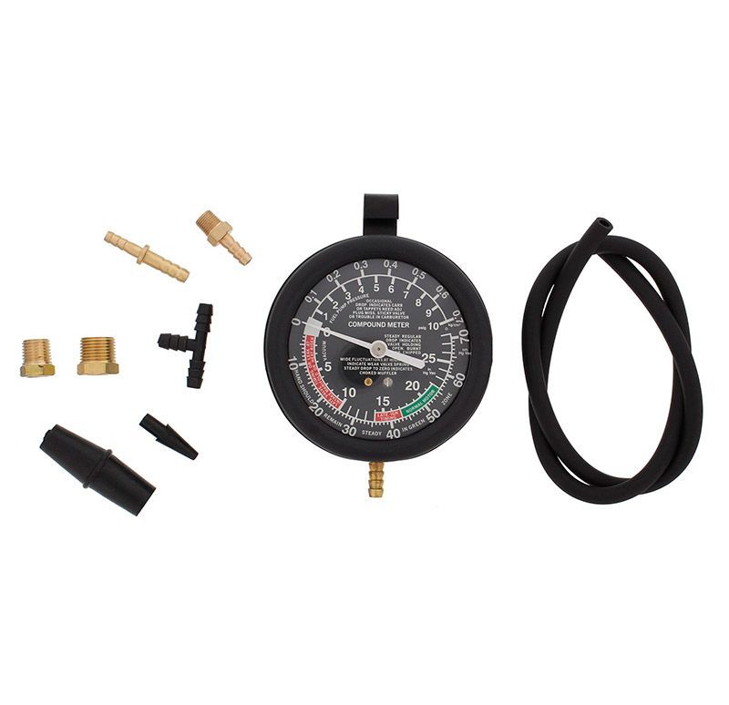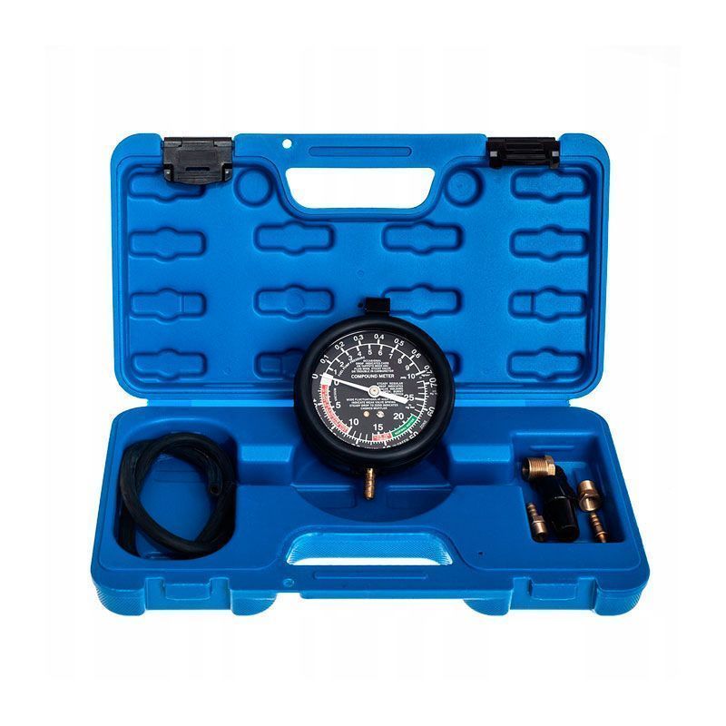 Вакуумметр автомобильный для диагностики давления трубины, топливного насоса и других вакууммных систем. Измеритель вакуума (вакуумметр) с набором переходников.