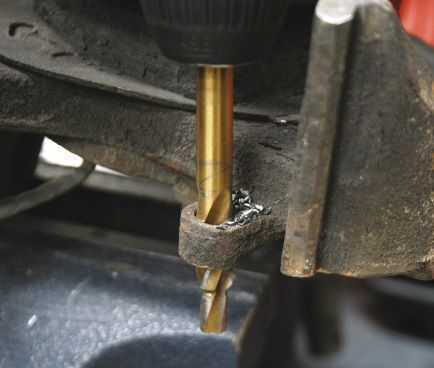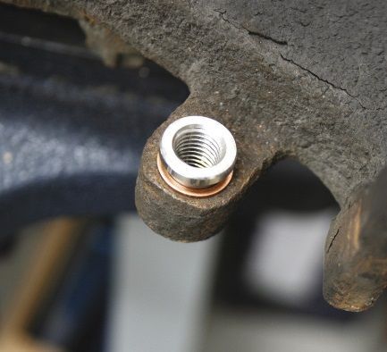 После нарезки необходимой резьбы большего диаметра в в поврежденные места креплени устанавливают втулки с медными шайбами. На картинках представлен процесс восстановления.
