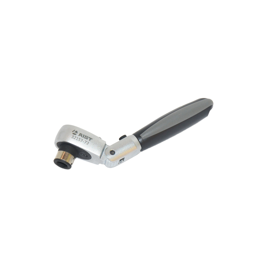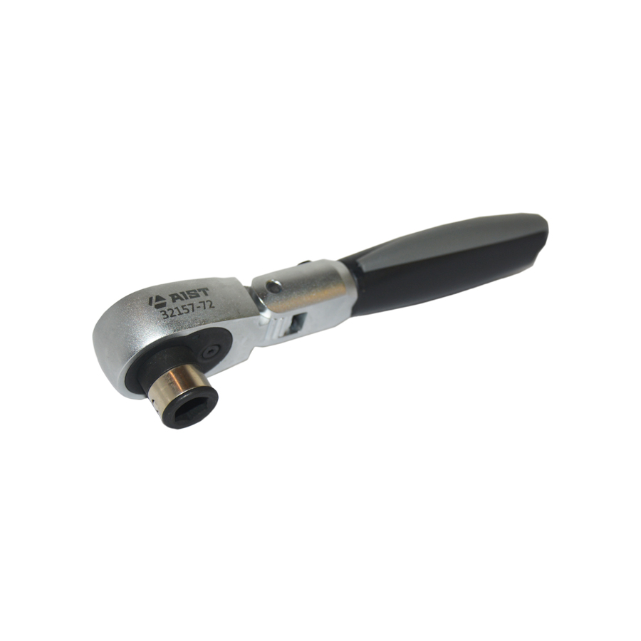 Трещотка для бит 10 мм реверсивная шарнирная укороченная. Используется ключ трещетка для бит 10 мм. Инструмент трещотка (трещоточная рукоятка) имеет храповый механизм на 72 зуба, флажковый переключатель рабочего направления и шариковую фиксацию. Трещотка для битов оснащена двухкомпонентной маслобензостойкой рукоятью. Профессиональная трещетка для бит-насадок 10 мм. Шарнирное строение позволяет использовать трещотку в труднодоступных местах.