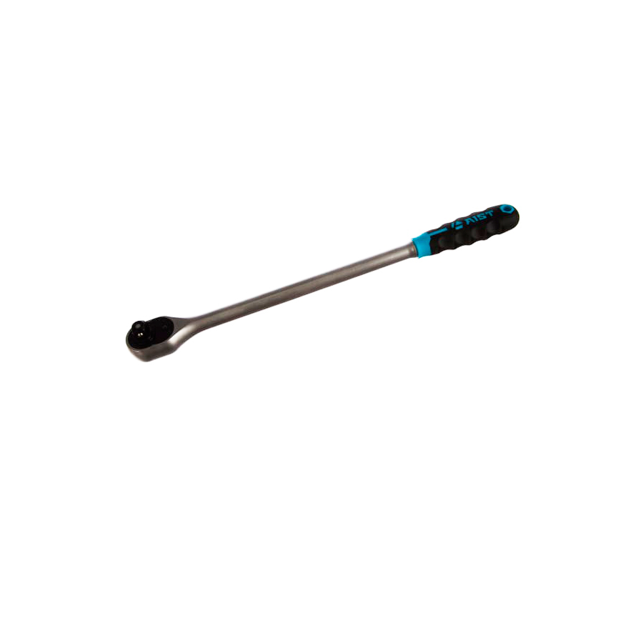 Трещетка для головок 1/2. Используется длинная усиленная ключ трещетка 1/2 для головок и вместе с другим сборно-монтажным инструментом соответствующего посадочного квадрата. Инструмент трещотка (трещоточная рукоятка) имеет храповый механизм на 36 зубов (силовая), флажковый переключатель рабочего направления, шариковую фиксацию и кнопку сброса. Трещотка для головок оснащена двухкомпонентной маслобензостойкой рукоятью, которая повторяет контур пальцев кисти рук. Имеет удлиненный рычаг. Профессиональная силовая трещетка для головок.