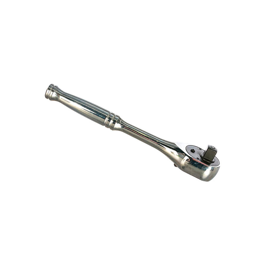 Трещетка для головок 3/8 с металлической ручкой. Используется ключ трещетка 3/8 для средних головок и вместе с другим сборно-монтажным инструментом соответствующего посадочного квадрата. Инструмент трещотка металлическая (трещоточная рукоятка) имеет храповый механизм на 36 зубов (силовая), флажковый переключатель рабочего направления, шариковую фиксацию и кнопку сброса. Трещотка металлическая для головок оснащена полированной рукоятью. Профессиональная трещетка для головок.