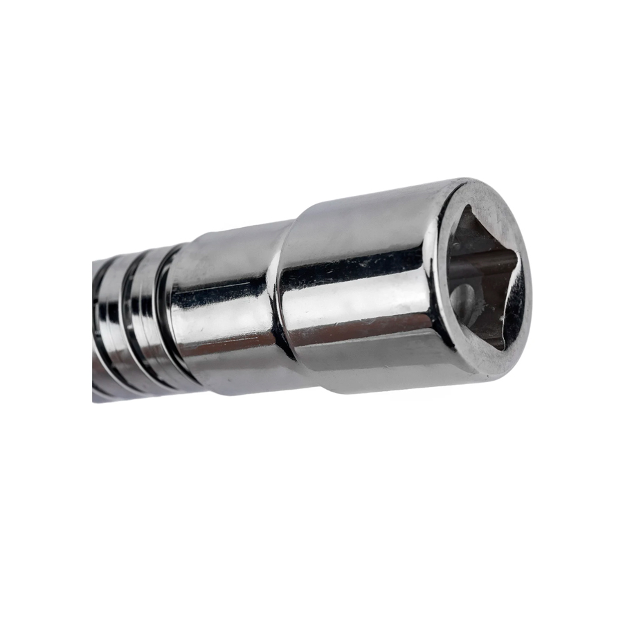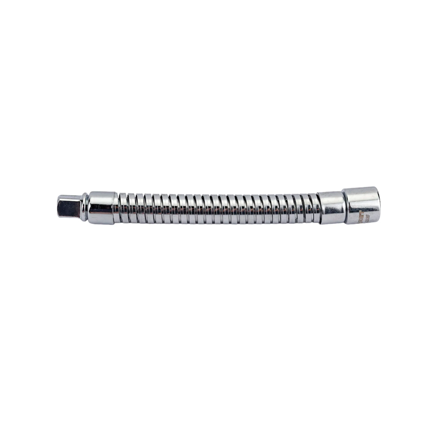 Гибкий удлинитель для торцевых головок 1/2" дюйма 200 мм используется вместе с большой трещоткой или воротком для работы с резьбовыми соединениями, находящихся в труднодоступных или углубленных местах. Вместе с другим сборным инструментом удлинитель на 200 мм может образовывать сложные слесарно-монтажные конструкции. За счет гибкой конструкции позволяет обходить выступы.