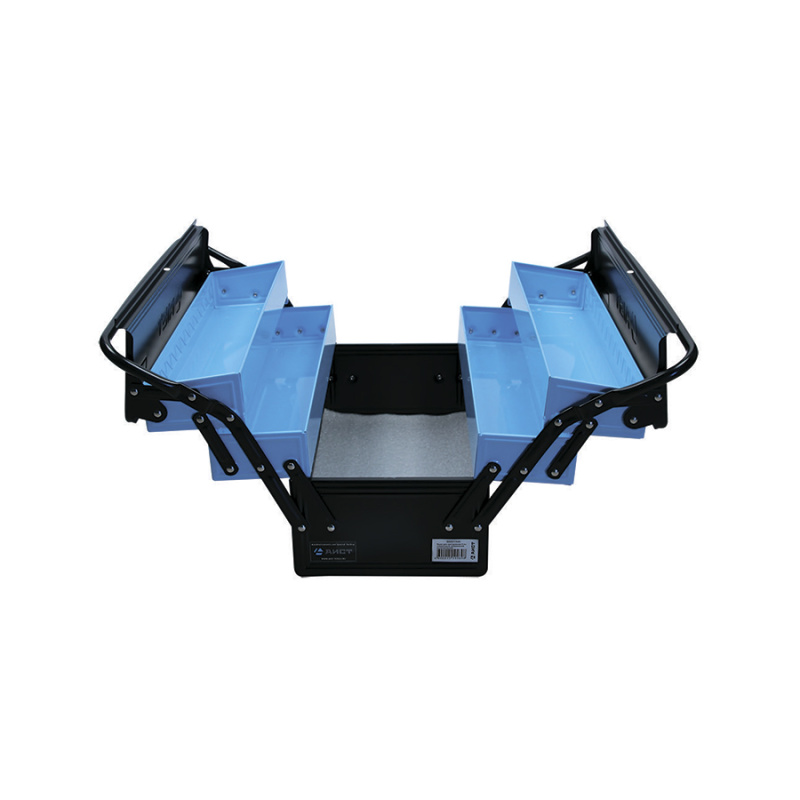 Ящик инструментальный переносной металлический с 5-тью раздвижными (раскладными) ящиками используется для хранения инструментов. Ящик для хранения инструмента имеет усиленную конструкцию за счет ребер жесткости, которые расположены по бокам ящика.